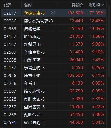 生物技术股大涨,药捷安康涨超77%。药捷安康-B (02617.HK)近日公布,公司核心产品替恩戈替尼(Tinengotinib,TT-00420)联合氟维司群治疗经治失败的激素受体阳性(HR+)且人表皮生长因子受体2阴性或低表达(HER2-)的复发或转移性乳腺癌II期临床试验,已于2025年9月10日获得了中国国家药品监督管理局的临床默示许可。